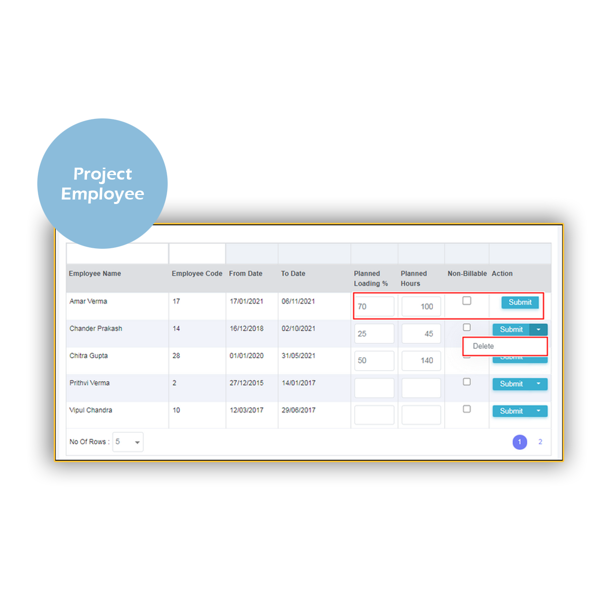 • Review deployment of employees on projects with loading percentage and planned hours.