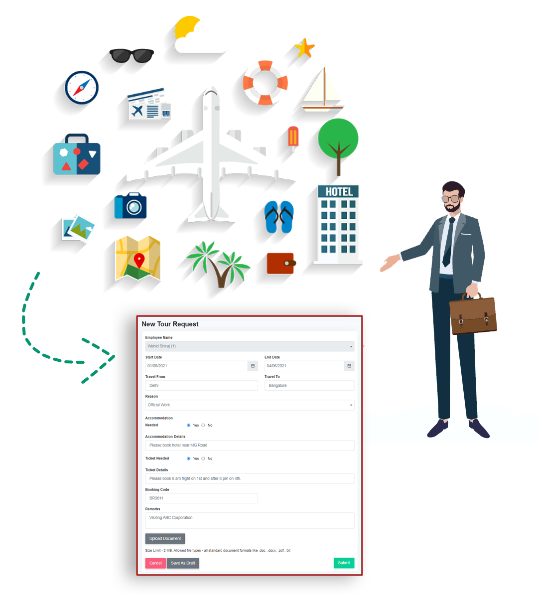 • Employees going out for duty can submit outdoor duty (OD) requests which are used to regularize attendance.